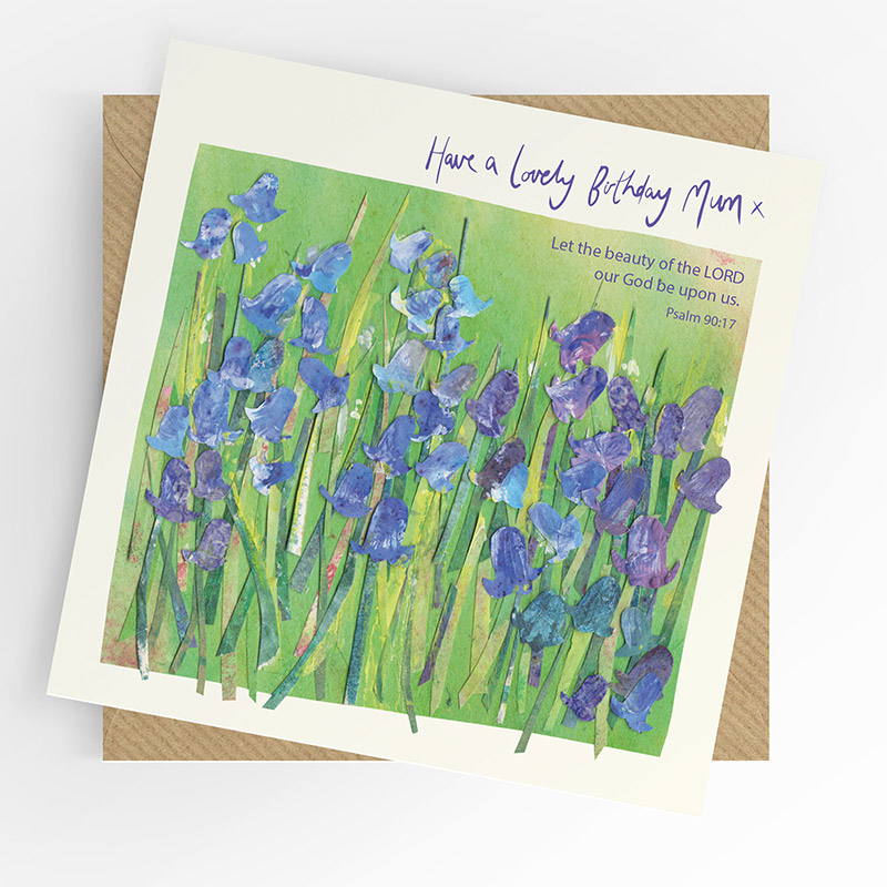 A beautiful field of wild bluebells… intricately cut out to create this design to wish a Happy Birthday Mum.